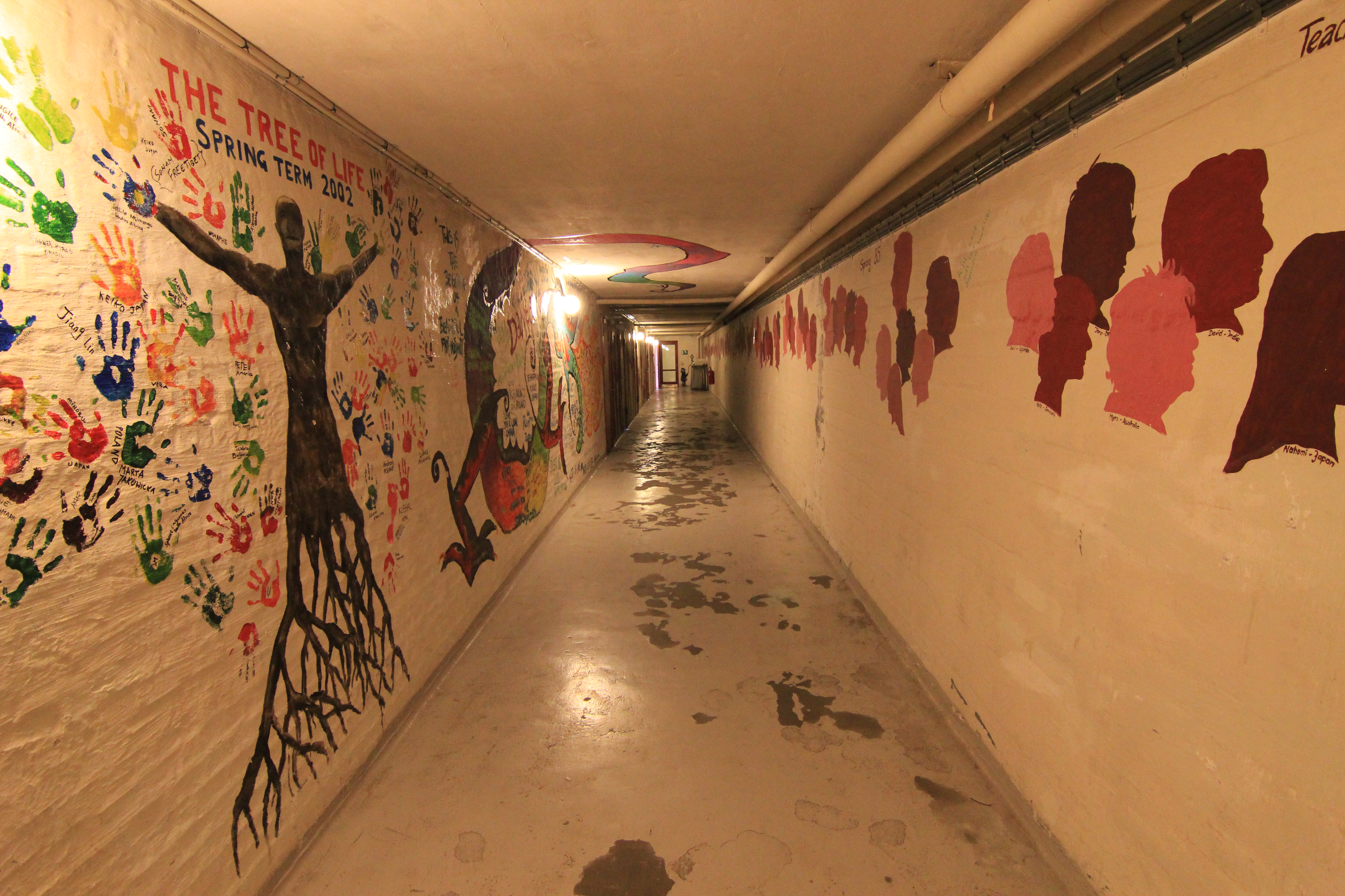 Bữa trưa thứ hai là bữa trưa mà có lẽ tất cả mọi người đều mong chờ vì ai cũng đói bạc mặt sau hai giờ đồng hồ đi bộ ròng rã và đã quá trưa mà vẫn chưa có gì bỏ bụng. Buổi trưa được trông đợi này thoả mãn chúng tôi với cá hồi, spaghetti và một loại trứng cá lổn nhổn. Khẩu vị đúng theo kiểu Âu, và tôi bắt đầu buột miệng rằng mình đã bắt đầu có cảm giác nhớ nhớ thèm thèm canh mẹ nấu và càng hiểu rõ hơn nỗi lòng của thằng em trai khi quanh năm phải ăn những thứ này. Sự đói bụng cuối cùng cũng được nhanh chóng khoả lấp và mọi người sẵn sàng cho một chuyến khám phá khác, dù là lần này thì gần hơn nhưng rõ ràng cũng rất thú vị khi tìm hiểu về chính nơi chúng tôi đang ở IPC. Một lần nữa 4 nhóm được chia ra và tôi lại theo nhóm của thầy Angelo – một chàng trai có lẽ chỉ khoảng bằng tuổi tôi mà thôi. Tôi sẽ tìm hiểu thêm về nhân vật này để kể cho các bạn trong những ngày tiếp theo. Chuyến hành trình ở IPC đi qua rất nhiều không gian, dãy nhà, những căn phòng đặc biệt nhuốm màu kỉ niệm dưới tầng hầm. Rất nhiều tranh, bút tích, các sản phẩm báo tường, bích hoạ trang trí của nhiều sinh viên các thế hệ khác nhau. Đây chính xác là nơi mà thời gian dừng lại lâu nhất và dường như nó đang mỉm cười khi nhớ về một quãng thời gian tươi đẹp ở ngôi trường này.