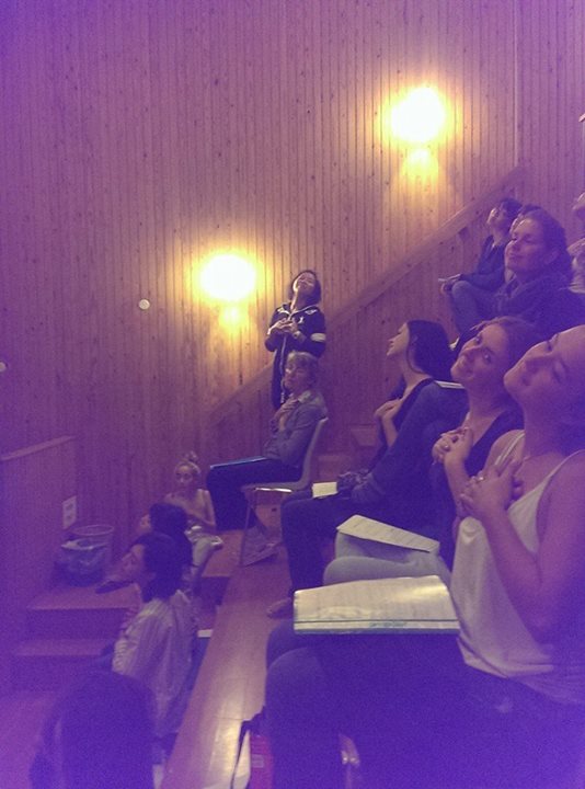 Sau khi ăn tối và dọn dẹp xong, chúng tôi chạy vội đến lớp học tiếp theo cũng của thầy hiệu trưởng là Choir. Giờ tôi đã hiểu việc phân bè và hát hò không dễ như mình tưởng tượng. Chúng tôi ngồi trong một căn phòng rất ấm cúng, căn phòng dùng để xem phim, khi mở ra thì là một sân khấu, một sân khấu rất đa năng và khiến tôi rất thán phục về óc sáng tạo của kiến trúc sư thiết kế.