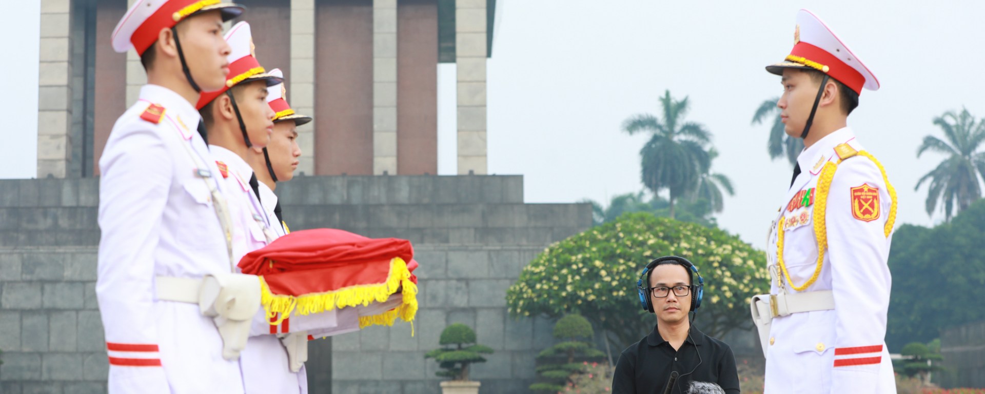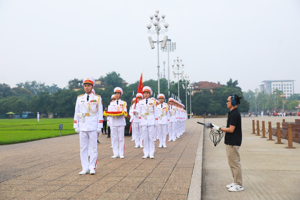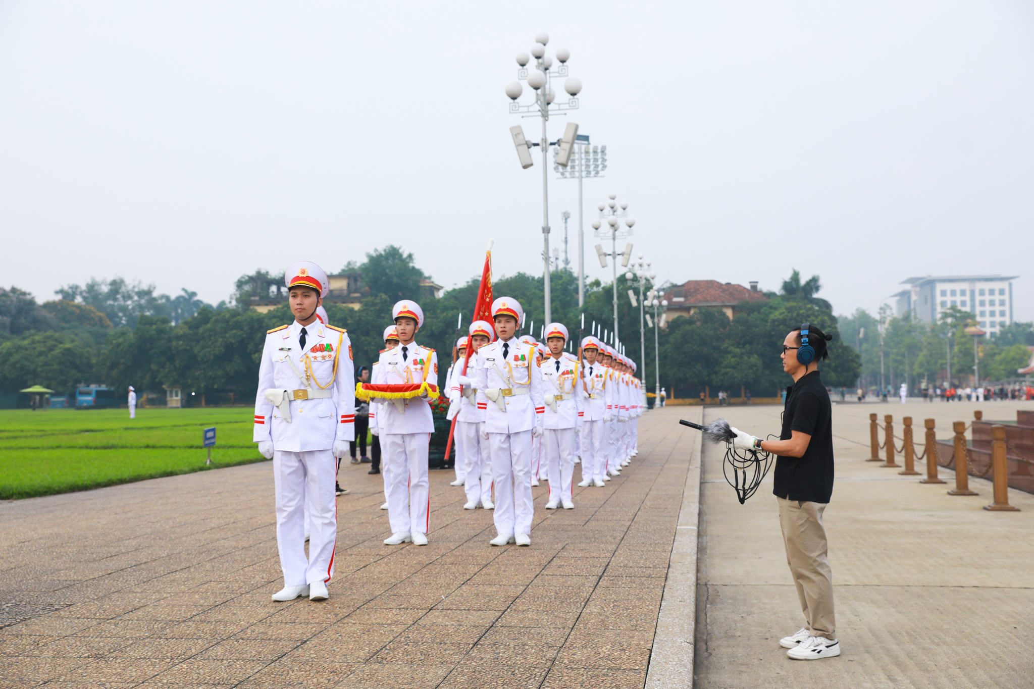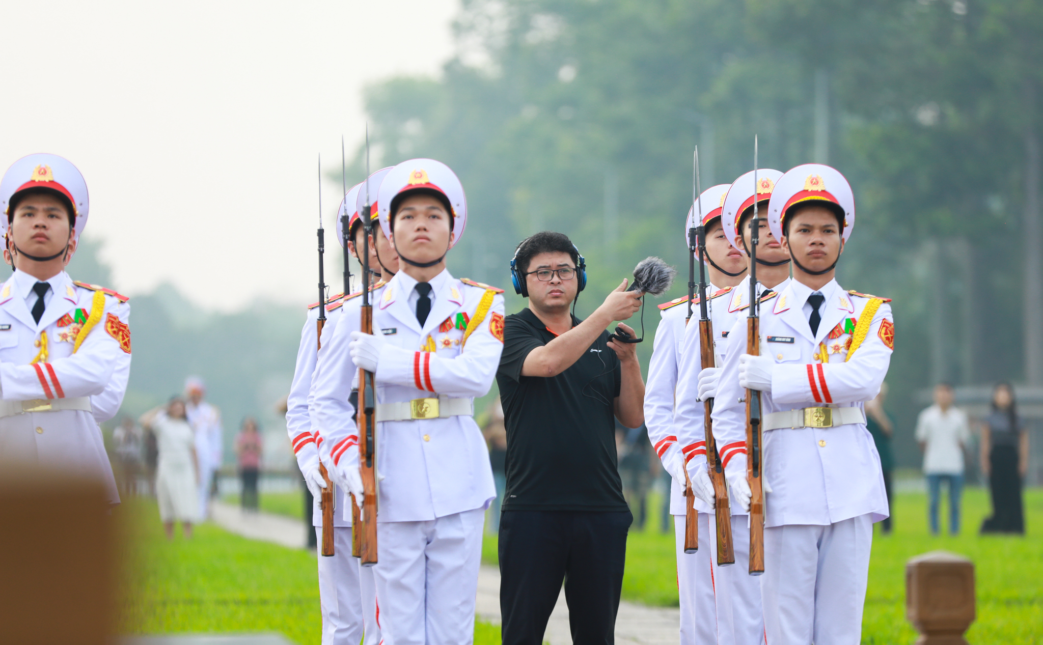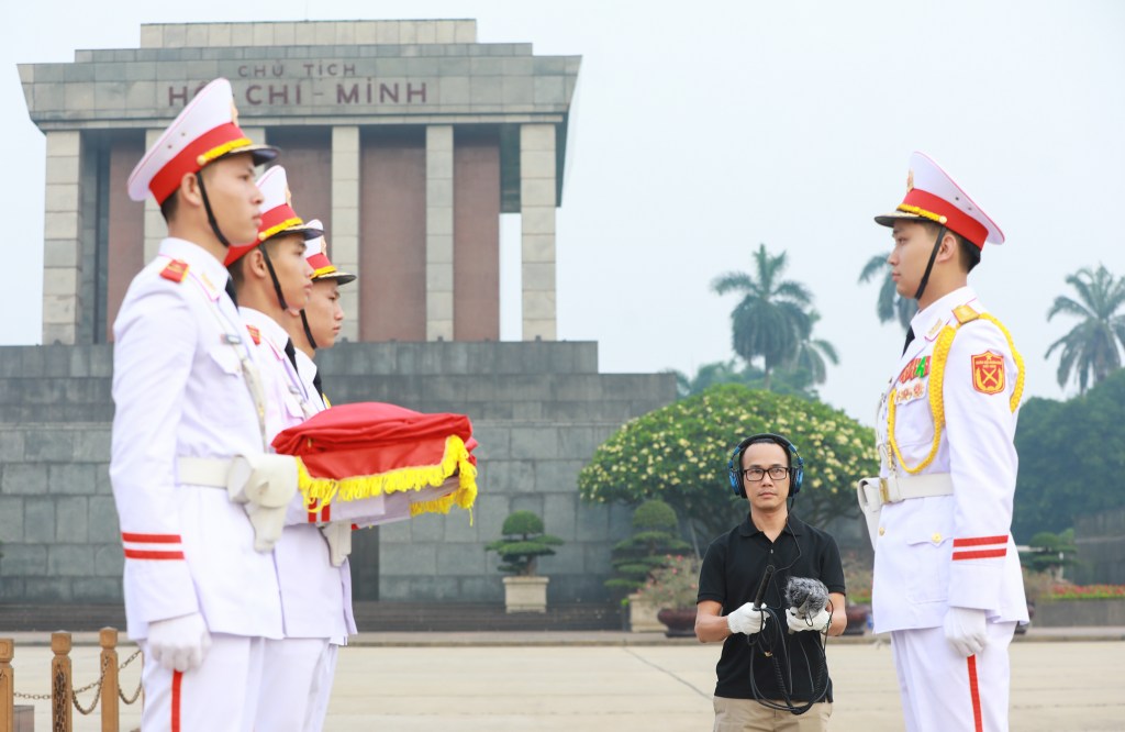 Với các tư liệu cũ như tiếng tàu điện, còi hiệu lệnh, kỹ thuật viên mất khoảng tám tiếng lọc tạp âm theo kỹ thuật thủ công, để âm thanh sạch nhưng không mất đi nét hoài cổ. Rõ ràng rất phức tạp khi thực hiện thu âm cho khoảnh khắc thiêng liêng này. Khó nhất là phải thu âm ở hiện trường thật với môi trường rất khắt khe về mặt kiểm soát an ninh. Phải mô phỏng đúng vị trí và sự di chuyển của âm thanh tại hiện trường. Ngoài ra, quảng trường có diện tích rất lớn, để tái tạo được không khí trang nghiêm, thiêng liêng của lễ thượng cờ bằng âm thanh không phải dễ. Chẳng hạn các chiến sĩ đi từ trái sang phải thì người nghe cũng phải thấy tiếng bước chân của họ chuyển từ loa trái sang loa phải. Đoàn quân đến càng gần người nghe thì tiếng leng keng của huy hiệu trên ngực áo các chiến sĩ càng rõ. Vị trí của cột cờ được mặc định ở giữa hai loa. Tiếng hô hiệu lệnh sẽ lệch sang trái một chút vì đó là vị trí đứng của người hô. Tiếng vác súng lệnh đương nhiên lệch phải vì đoàn quân đứng bên đó.