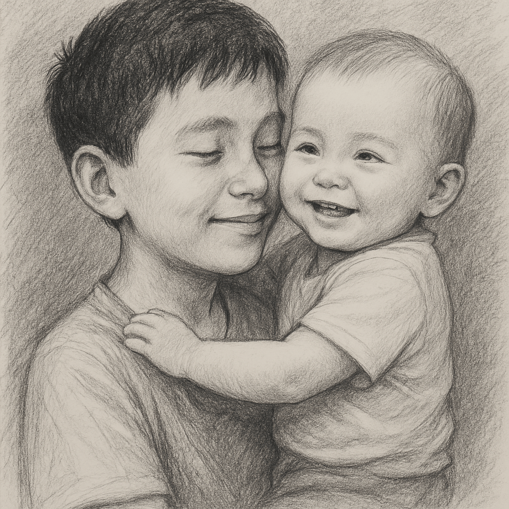 Và ở đây tôi có đứa em đầu tiên – em Lợi, một thằng bé sinh ra giữa những túng thiếu nhưng là một thằng bé rất lanh lợi và hay cười. Có đứa em đầu tiên cũng gắn với nhiều trách nhiệm hơn, oai hơn nhưng nhiều lúc cũng bực mình. Nhưng mình nghĩ phủ lên tất cả là một cảm giác rất hân hoan khi có thêm một người bạn nhỏ….
