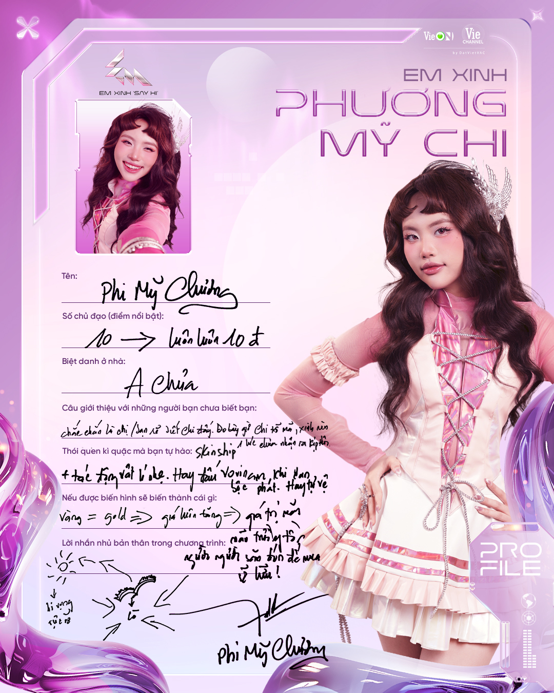 Nổi tiếng từ Giọng hát Việt nhí, theo đuổi dòng nhạc dân ca hiện đại. Cô mong muốn mang âm nhạc truyền thống vào sân khấu idol nữ một cách tinh tế. Mình cũng thích Chi, cô nàng thông minh, dí dỏm, mặn và thú vị, và chắc chắn không phải bàn về những nỗ lực mà cô đã làm trong thời gian qua để thoát xác từ giọng ca nhí thành một idol nữ thực sự.