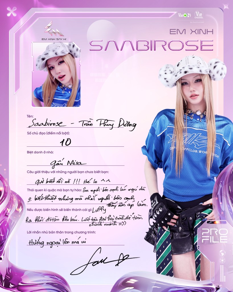 Nữ rapper Gen Z sở hữu hơn 100 ca khúc tự sáng tác – bắt đầu viết nhạc từ năm 17 tuổi. Cô gây chú ý mạnh mẽ với MV “Hot hòn họt” kết hợp cùng Hương Giang, đạt hơn 4,6 triệu lượt xem trên YouTube chỉ sau thời gian ngắn. Được khán giả nhận xét là “rap thuần, thông minh, trình diễn tốt và mang đậm chất liệu Việt Nam”, Saabirose đang nổi lên như một làn gió mới đầy tài năng và bản sắc riêng trong làng rap Việt. Đã tham gia Rap việt mùa 4