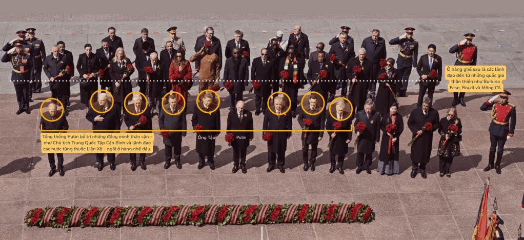 Tại Nga, Tổng thống Vladimir Putin từ lâu đã mời lãnh đạo các nước đến dự lễ Diễu binh Ngày Chiến thắng hằng năm ở Moskva. Thế nhưng, kể từ khi Nga phát động chiến tranh tại Ukraine và bị phương Tây cô lập, dàn khách mời danh dự của ông Putin càng trở nên mang nhiều tầng ý nghĩa.