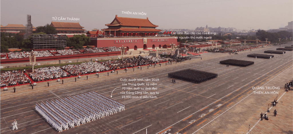 Cuộc diễu binh Ngày Quốc khánh năm 2019 của Trung Quốc kéo dài nhiều dặm dọc đại lộ trước Quảng trường Thiên An Môn, với hơn 500 đơn vị khí tài quân sự, bao gồm xe tăng, tên lửa đạn đạo xuyên lục địa (ICBM) và cả máy bay không người lái siêu thanh.