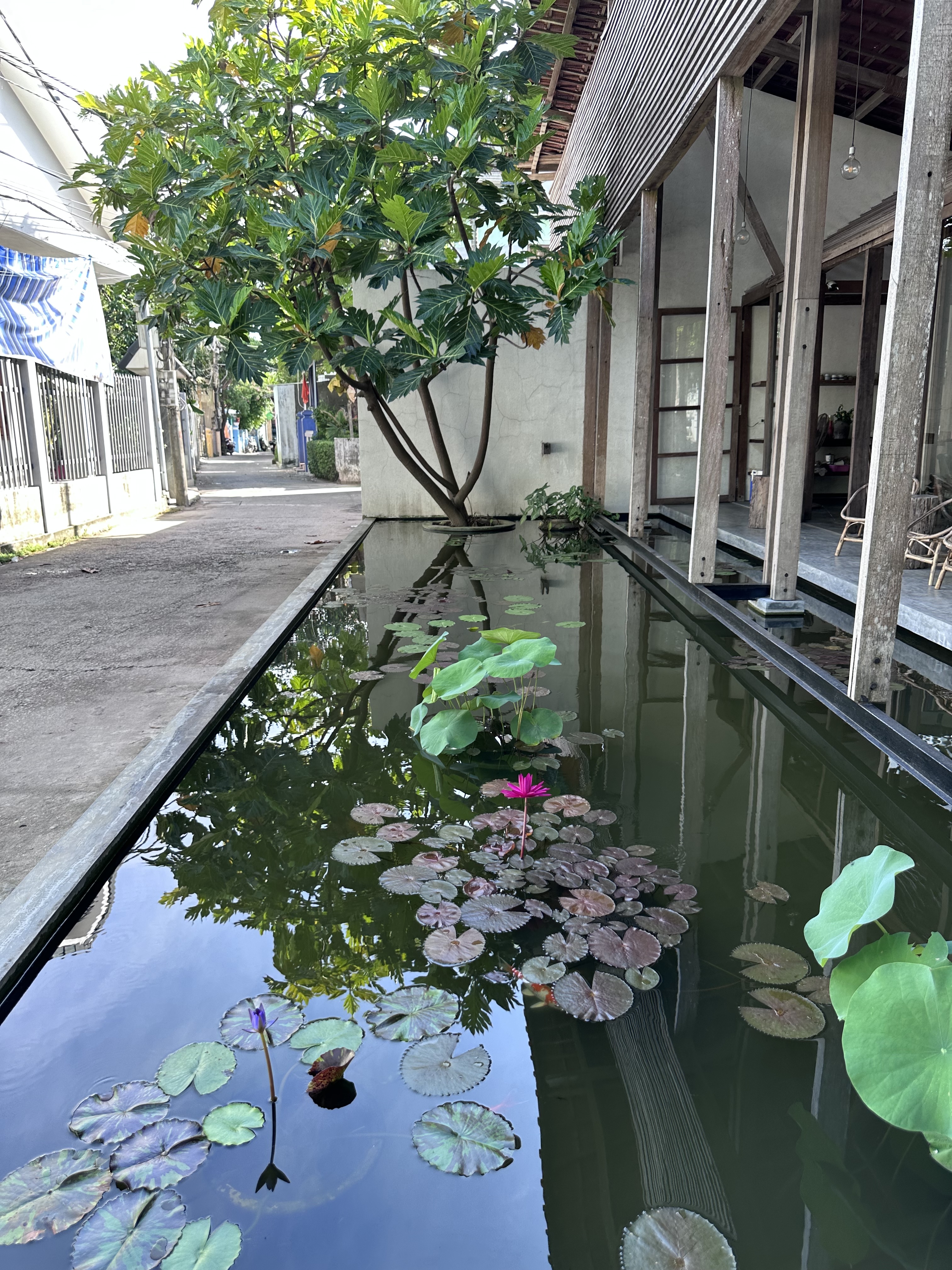 Bữa sáng ngon lành là cú đề-pa mạnh để bắt đầu một ngày mới. Tôi quay lại Sahi để tận hưởng khu vườn xanh mướt, không khí trong lành của xứ Huế. Về phòng, mở cửa đón nắng sáng len vào như động viên người lữ khách ngồi xuống viết lách. Không gian luôn có sức quyết định rất nhiều để người ta mải mê theo con chữ. Ở một ngõ nhỏ xứ thần kinh, tôi đã ngồi viết một mạch đến tận trưa, trong cái nhịp yên ả suýt quên mất mình phải ra ga cho kịp chuyến tàu vào Đà Nẵng.