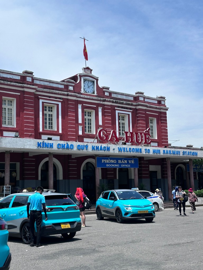 Trưa đến, trời nắng gắt khiến không khí ở khu vực ga Huế như đặc lại. Bên ngoài có nhiều hàng quán, xe cộ nối nhau đến chở khách. Tàu trễ khoảng 30 phút. Phòng chờ xôn xao một lúc rồi lại chìm vào thứ ambient chậm rãi, nơi mọi người đều chăm chú vào màn hình vuông nhỏ xíu trong tay. Khi tàu còn cách 10 phút, mọi người được vào sân ga. Giờ đi tàu đã tiện hơn với vé điện tử, nhưng tôi vẫn thấy cầm tấm vé giấy hồng hồng bé xíu vẫn “oách” hơn. Bên trong sân ga cũng tấp nập như bên ngoài. Tôi nhớ lần đầu đi tàu Thống Nhất từ Sài Gòn ra Hà Nội, đến Huế là bắt đầu thấy đồ ăn dọc đường thay đổi. Người người tranh thủ check-in trong nắng vàng như mật ong đổ lên sân ga, đường ray, và cả dáng bác nhân viên già băng qua sân thực hiện nhiệm vụ. Khác với đi máy bay, điều “ăn tiền” nhất khi đi tàu chính là cảm giác chờ đợi. Giống như hai đứa trẻ chờ những đốm sáng vụt đến ghé ga xép, ở đây, chúng tôi chờ đoàn tàu sẽ mang mình đi đến điểm tiếp theo – Đà Nẵng. Đó là một nỗi thấp thỏm xen lẫn háo hức. Với trẻ nhỏ là tò mò. Với người lớn, có khi là chút hoài niệm, về một lần từng chia tay ai đó ở sân ga.