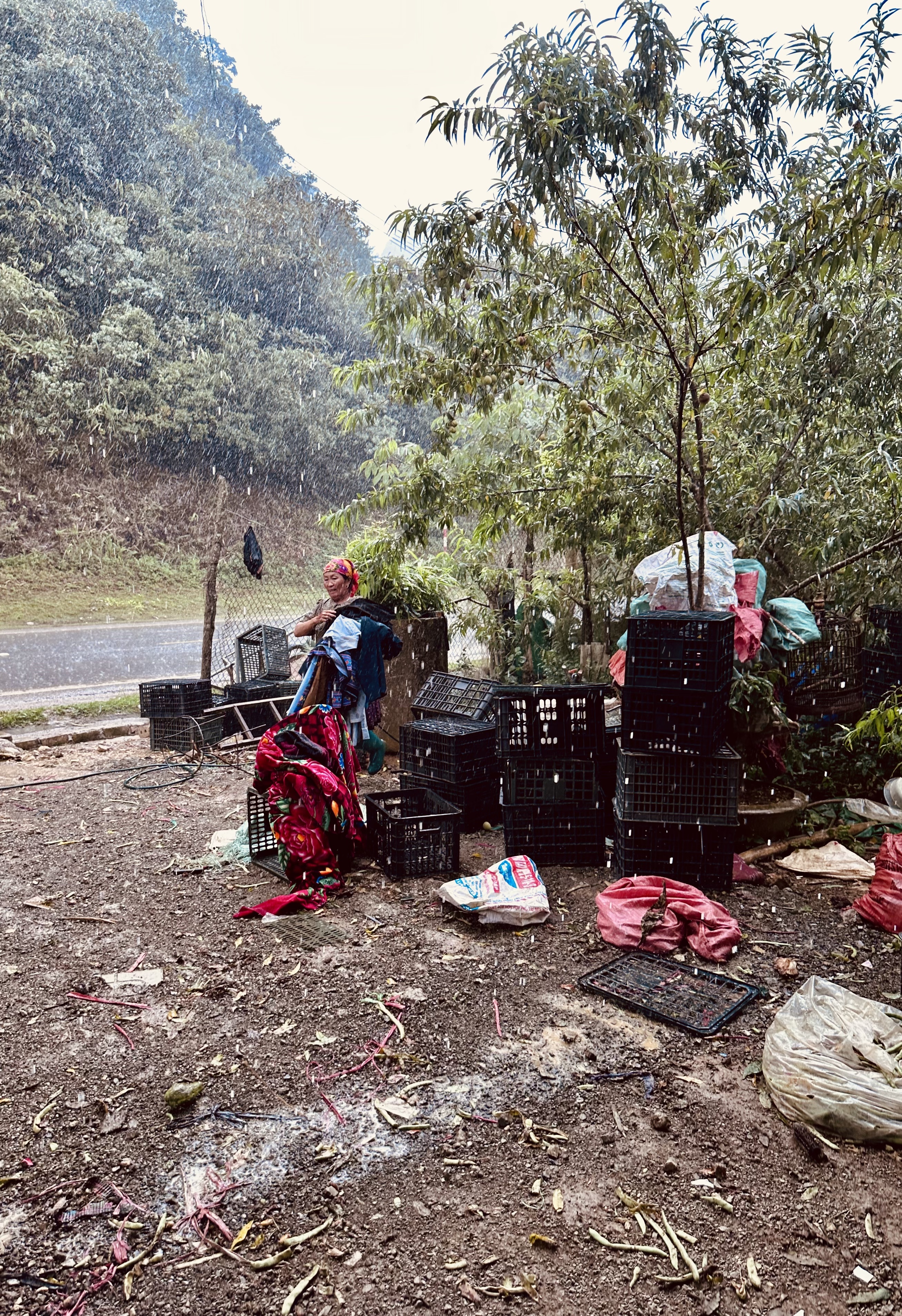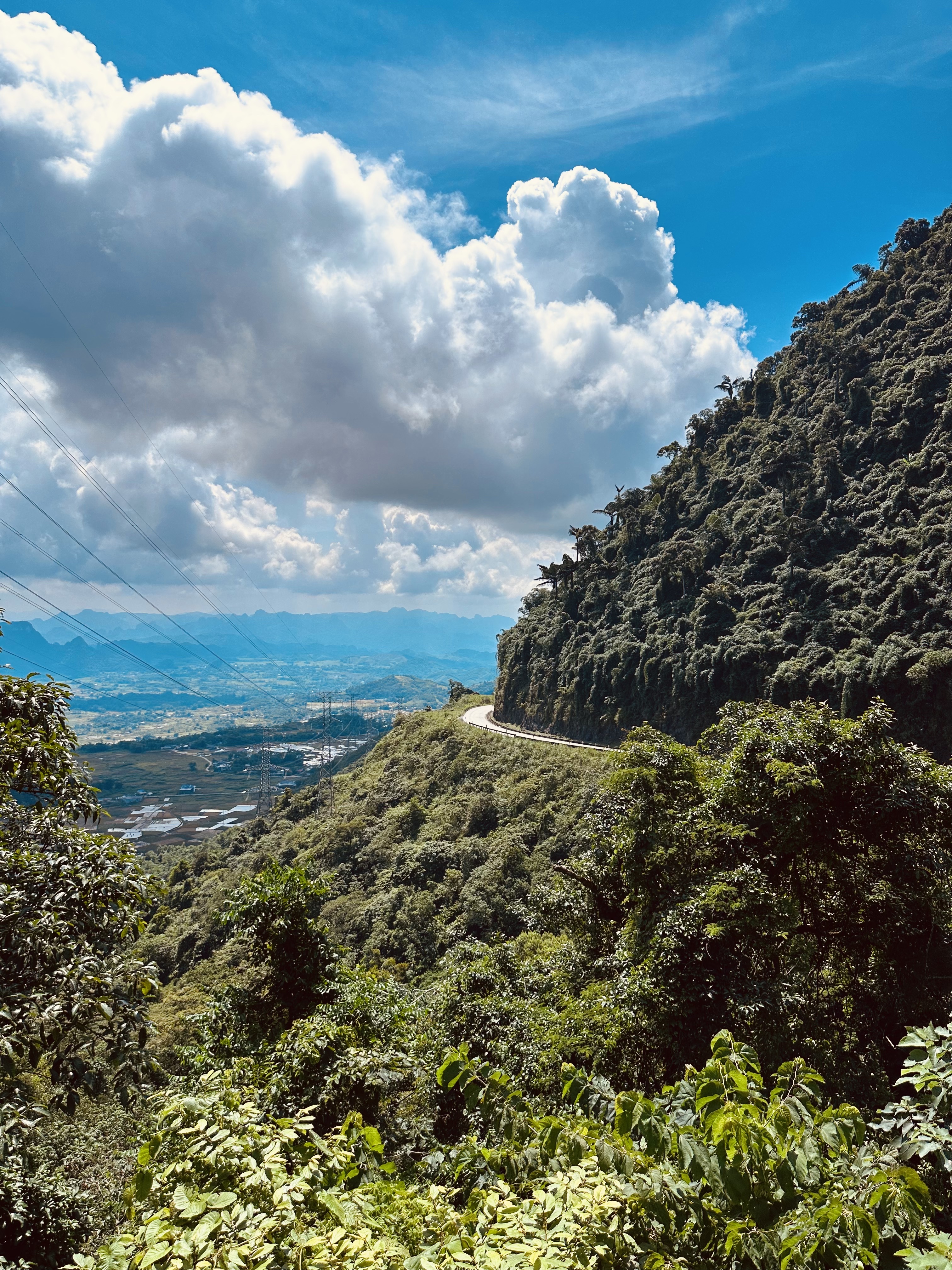 Mình chỉ biết chắc là mình sẽ đi về phía Tây Bắc, và đi một mình. Solo Travel có cái thú là mình sẽ là người đưa ra quyết định cuối cùng, chứ không vì cả nể hay chiều theo ai cả. Mình sẽ đối thoại với nội tâm nhiều hơn và thấy rõ mình đưa ra quyết định như thế nào và thứ làm cho mình vui nhất luôn là sự háo hức của người đi tới. Trong công cuộc chuyển mình của cả nước, những địa danh mới chen cùng những địa danh cũ nhưng cái thú của roadtrip là ta sẽ đi “xuyên táo” qua các địa danh đó để nó khắc vào đầu mình kiểu này hay kiểu kia. Như “dốc Cun” chẳng hạn! Ai đã từng đi qua Tây Bắc mà không nhớ đoạn này thì xem như mới chỉ đi nửa lòng. Dốc Cun không quá dài, nhưng có sức nặng của một lời chào. Đứng trên cao nhìn xuống, quốc lộ 6 vẽ nên một dải lụa uốn lượn giữa rừng, còn mây thì bắt đầu xuất hiện, lơ lửng như ai vừa mới giặt xong và phơi trên tầng không. Tôi dừng lại thêm một lần nữa ở đoạn gần Cao Phong – nơi có rất nhiều những sạp cam và mía ven đường. Gió từ thung lũng đẩy lên, mang mùi khói, mùi vỏ cam, và cả tiếng nói chuyện thì thầm ríu rít của những bà cụ, những người phụ nữ bán hàng.