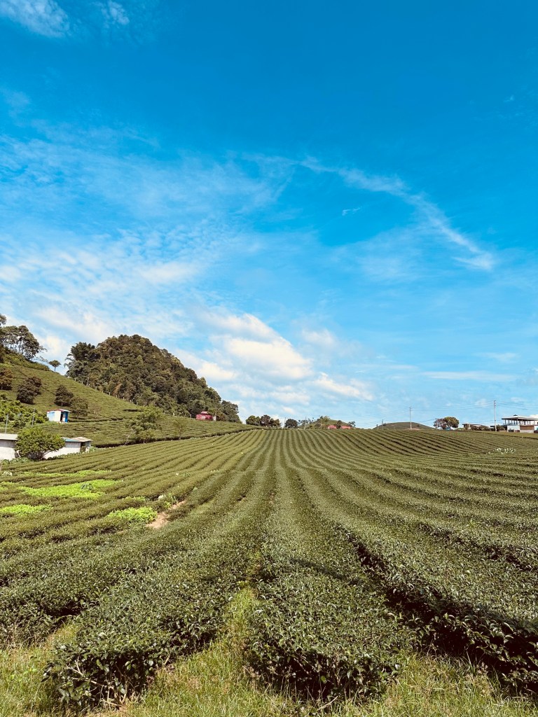 Tôi lên đường. Lại đi tiếp. Hết nắng rồi mưa. Hết mưa rồi nắng. Trò chơi nhấp nháy của khí hậu miền núi khiến người ta không thể lường trước, nhưng cũng vì thế mà cảnh vật hai bên đường luôn như đang thay áo mới. Có lúc tôi dừng lại giữa đường chỉ để nhìn thấy một cánh rừng sau mưa ánh lên những sợi khói mỏng, hay những giọt nước còn đọng trên sợi dây điện bắt sáng như chuỗi hạt thủy tinh. Rồi Vân Hồ hiện ra – trong một đoạn mở khung hoàn hảo, khi sương chưa tan hết, khi thung lũng vẫn còn thở mơ màng sau cơn mưa trước đó. Một dải thung lũng rộng mở, thoáng đãng, nằm yên giữa hai dãy núi như được đặt vào đúng vị trí của nó trong một bức tranh thuỷ mặc sống động. Có những mái nhà ẩn hiện, những vạt rừng thông như lớp nền phía sau, và cả những cánh đồng ngô đang lên xanh. Tôi dừng lại lâu hơn thường lệ, dựng chân chống xe bên đường và hít một hơi thật sâu – cái lạnh sau mưa, cái mùi của đất trời, cái gió lùa qua cổ áo như lời nhắn nhủ: “Cậu đang ở giữa thiên nhiên rồi đấy, đừng vội.” Và mình có cơ hội được mỉm cười cùng niềm vui của mình mà không bị ai chi phối. Đi qua Vân Hồ một chút, mình quyết định sẽ dừng lại ở thị trấn nông trường Mộc Châu. Mình thích tên gọi này, nó gợi cho ta cảm giác vừa xưa cũ vừa thân thuộc. Dấu ấn của thời kỳ bao cấp vẫn hiện rõ qua tên gọi, trong đó nông trường chè Mộc Châu và nông trường bò sữa là hai trụ cột nổi bật nhất. Và những ký ức đẹp trong những chuyến xuyên Việt với Mộc Châu khiến mình quyết định sẽ dừng lại ở đây vài hôm để sống một nhịp thật chậm, dành nhiều thời gian để đọc, viết, lang thang và ghi lại những câu chuyện mà không dùng thiết bị số. Đôi khi những chuyến đi như thế này sẽ là cách để mình được detox khỏi thế giới số một cách hiệu quả nhất.