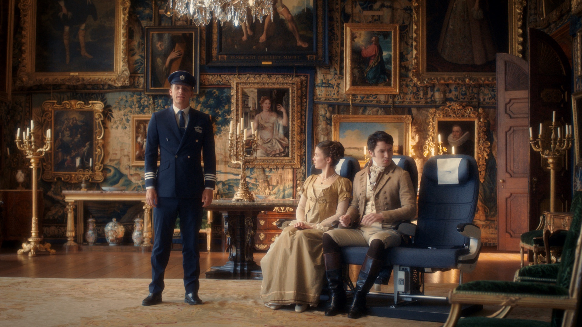 - British Airways (2024) tung ra một “period drama” dài 5 phút, y như Bridgerton nhưng thay cảnh vũ hội bằng hàng ghế máy bay. Sharon Maguire (đạo diễn Bridget Jones’s Diary) chỉ đạo, Jenny Beavan (3 lần Oscar) lo trang phục, 40 nhân viên BA diễn xuất. Kết quả: hàng triệu view trên YouTube. Nếu bạn là fan Bridgerton, BA 2024 sẽ khiến bạn muốn mặc váy phồng và uống trà ngay trên ghế hạng phổ thông. Nhưng, xin lỗi, seatbelt không phải corset, và bạn cần biết cài nó thế nào.”