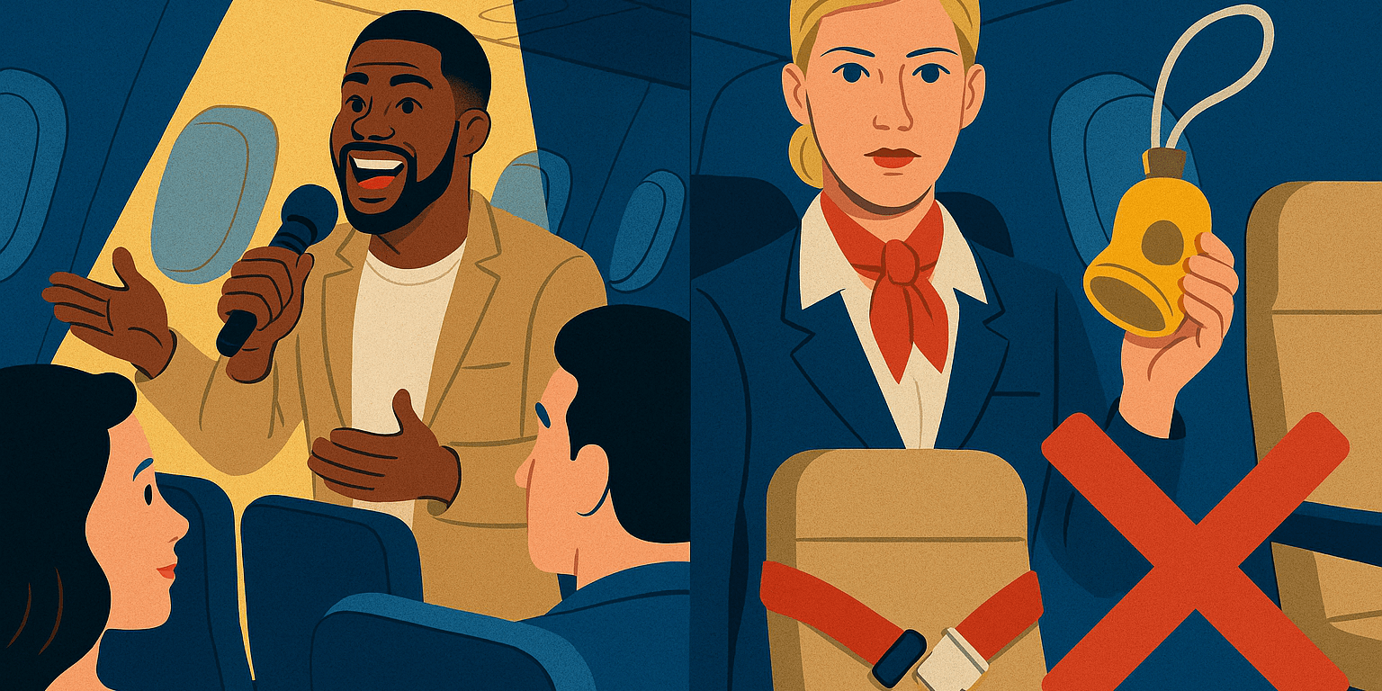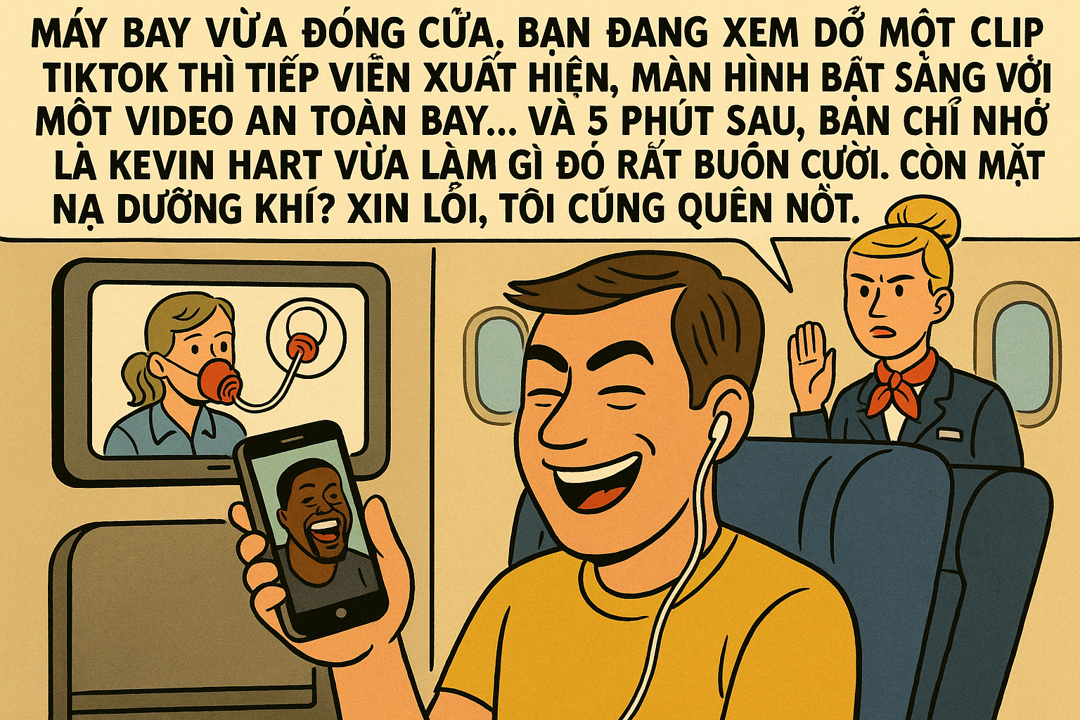 Bạn có bấm play video an toàn bay chỉ để… quên hết mọi hướng dẫn sau khi máy bay cất cánh? Trong kỷ nguyên “không cầm điện thoại, không thể sống”, video an toàn bay – sự pha trộn kỳ lạ giữa safety briefing và showbiz mini, đang trở thành một phép màu… hay một mối nguy tiềm ẩn? Welcome to the weird world of ‘safety entertainment’.