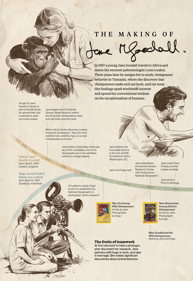Nếu không có National Geographic, Jane có thể đã chỉ là một nhà nghiên cứu xuất sắc trong giới khoa học hẹp. Nhưng hình ảnh Jane với mái tóc vàng buộc cao, đôi giày vải, cuốn sổ trên tay – qua ống kính của Hugo van Lawick – đã biến bà thành một biểu tượng.