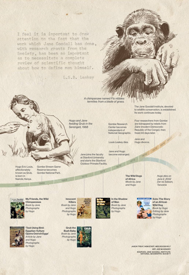 - 1963 – My Life Among Wild Chimpanzees đăng trên National Geographic.