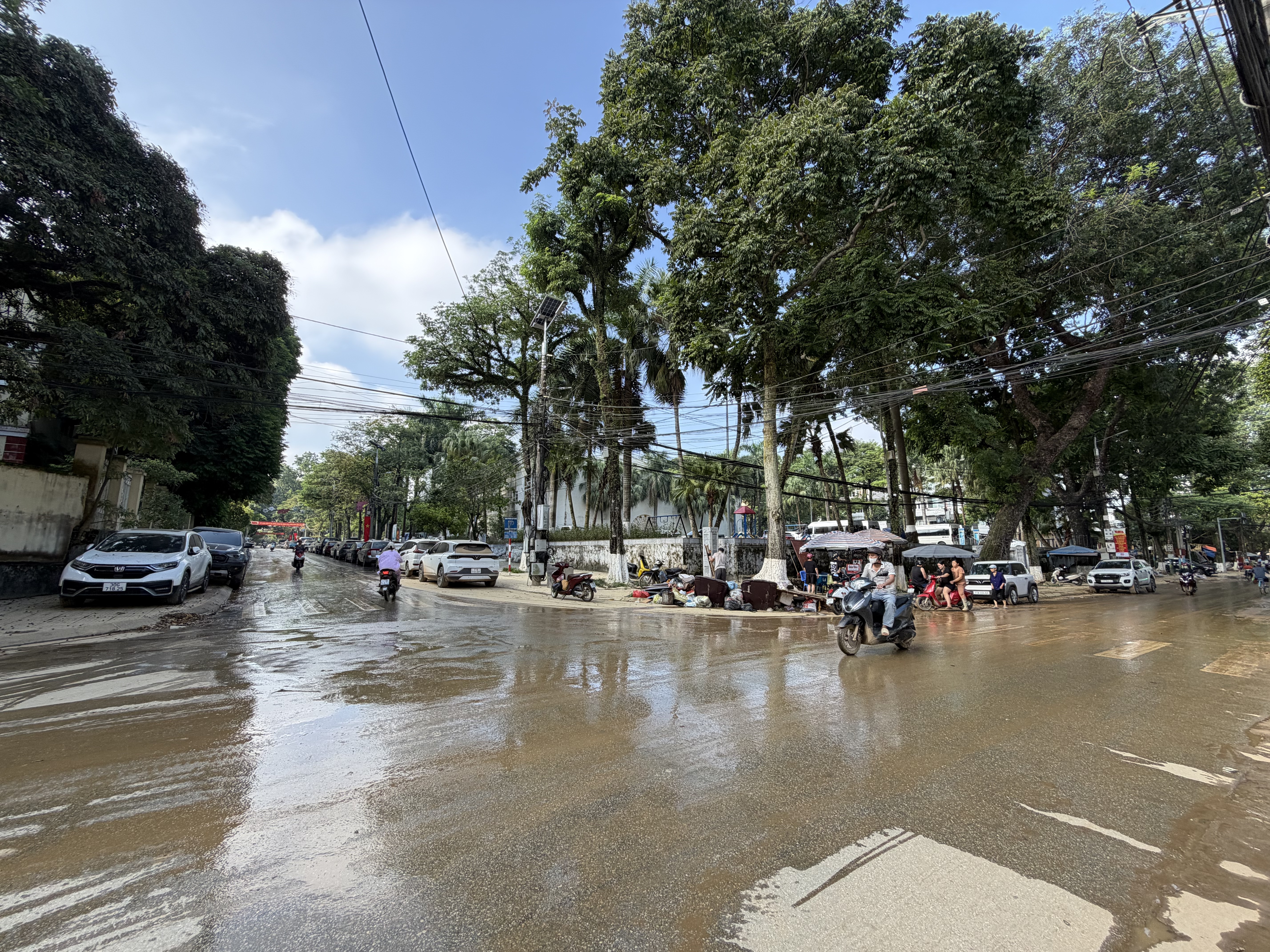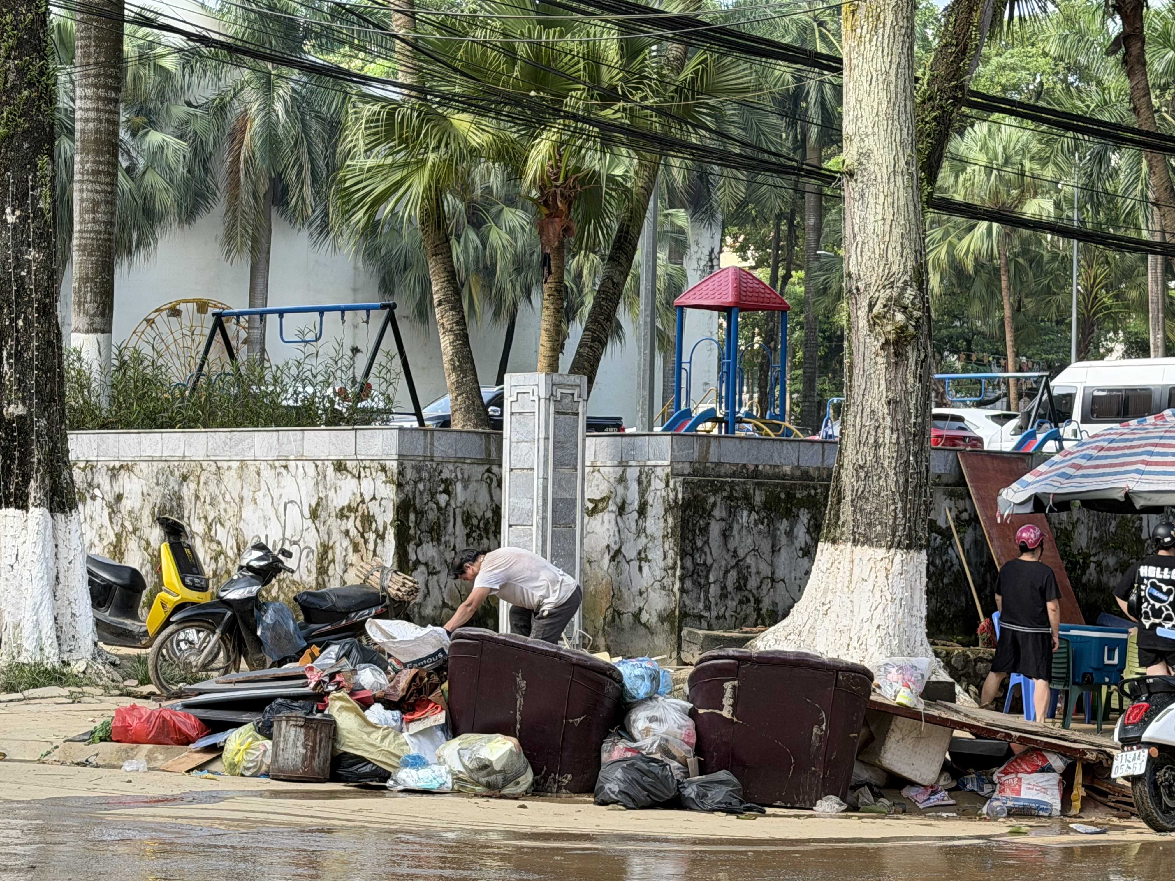 Nhiều tuyến đường vẫn còn bì bõm. Nhưng trời sau bão lại xanh trong đến lạ. Nắng rực vàng, như muốn hong khô mọi vết thương. Người dân vác đồ đạc ra sân, ra vỉa hè để chà rửa. Bàn ghế, chăn màn, quần áo… phơi khắp nơi. Mọi người biết rằng sẽ mất rất nhiều thời gian để mọi thứ trở lại như xưa.