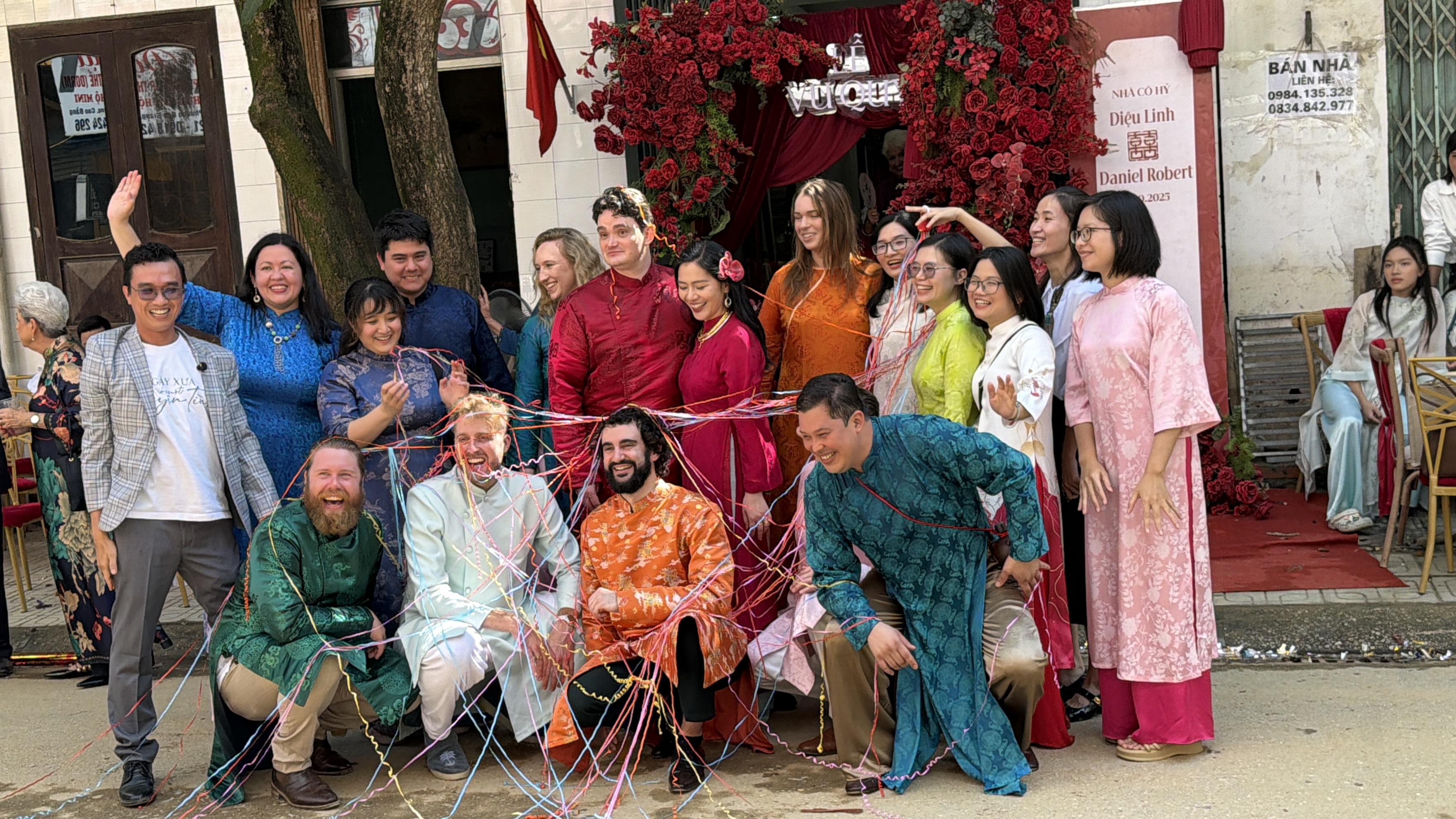 Chiều hôm trước đám cưới, tất cả cùng nhau quét dọn đường phố sau lụt. Các cô gái Úc cầm chổi quét bùn đất trên đường, các chàng trai nước ngoài phụ vác những đống rác nặng nề. Họ cười rất nhiều, chia sẻ rằng đây là lần đầu tiên trong đời được “chu du sang tận Việt Nam để chứng kiến một đám cưới truyền thống” kiểu này – vừa dọn lũ, vừa đi cưới.