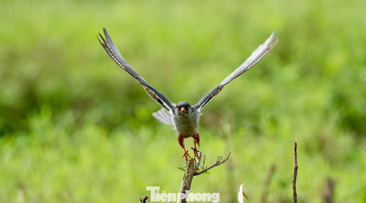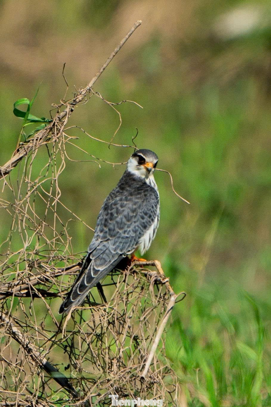 Theo các nhóm quan sát và nhiếp ảnh gia về đa dạng sinh học, chim cắt Amur thường xuất hiện vào khoảng tháng Mười trên các bãi bồi sông Hồng. Hình ảnh ghi lại cho thấy từng nhóm khoảng vài chục cá thể đậu trên những tán cây lớn, thân hình nhỏ nhắn, cánh dài và hẹp. Chim trống với lớp lông xám đen, bụng hung rực rỡ. Chim mái nổi bật với vòng mắt cam và chân màu sáng. Nhưng điều khiến giới nghiên cứu chú ý không chỉ là vẻ đẹp của chúng, mà là hành trình di cư khắc nghiệt. Từ các vùng Đông Bắc Trung Quốc, Nga hay Mông Cổ, chúng bay hàng nghìn cây số, đôi khi vượt biển liên tục hàng chục giờ, chỉ để tìm đến những vùng khí hậu ôn hòa và có đủ thức ăn để vượt qua mùa đông.