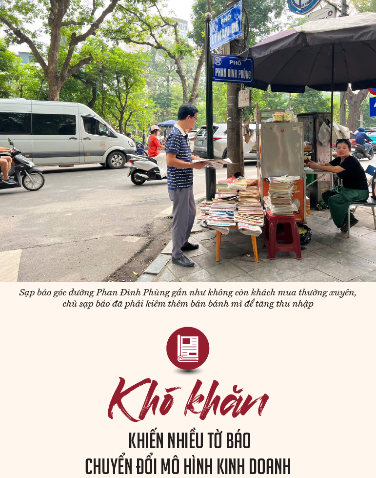 Nhưng nay, sau hơn 20 năm, góc phố sôi động đó không còn. Chị Hường – một chủ sạp báo duy nhất còn trụ lại – đã phải kiêm luôn bán bánh mì và nhật báo. Chị lắc đầu quầy quậy rồi bảo: “Chán lắm, chán lắm, một báo chỉ dám nhập về 5 tờ cũng không bán hết”.