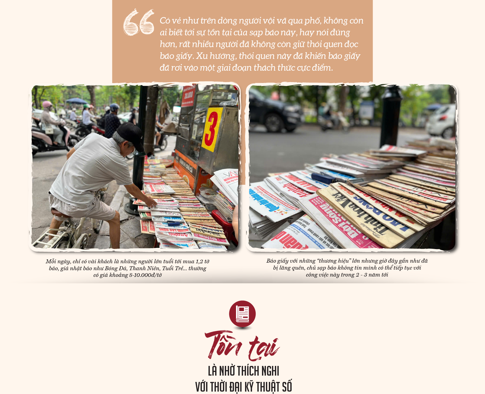 Có vẻ như trên dòng người vội vã qua phố, không còn ai biết tới sự tồn tại của sạp báo này, hay nói đúng hơn, rất nhiều người đã không còn giữ thói quen đọc báo giấy. Xu hướng, thói quen này đã khiến báo giấy đã rơi vào một giai đoạn thách thức cực điểm.