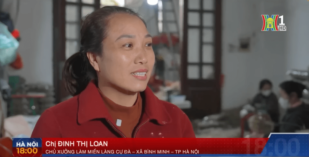 Những ngày cuối năm, xưởng miến của chị Đinh Thị Loan ở làng Cự Đà (xã Bình Minh, Hà Nội) đỏ lửa từ sáng tới tối. Vào vụ Tết, miến được làm liên tục để kịp giao cho các mối quen trong và ngoài thành phố. Có ngày cao điểm, xưởng có thể cho ra lò từ 8 tạ đến 1 tấn miến.