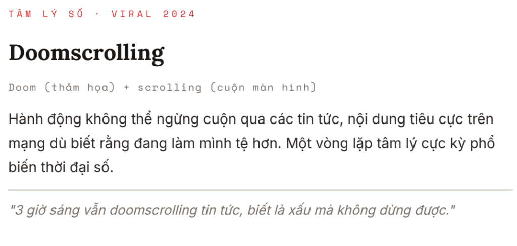 Những từ như “doomscrolling”, “brain rot”, “ghosting”, “gaslighting” không phải chỉ là slang vui. Chúng đặt tên cho những trải nghiệm tâm