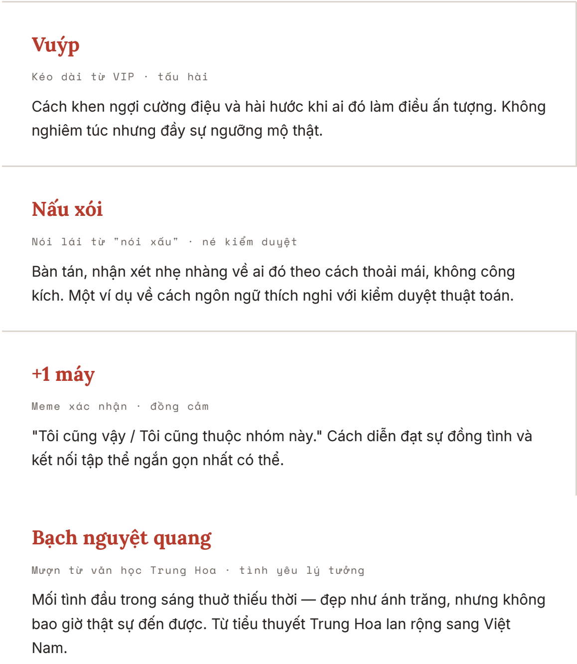Bạn có bao giờ ngồi trong một buổi họp, hay nghe con cái nói chuyện với bạn bè, và bỗng dưng cảm thấy mình như người nước ngoài giữa lòng Hà Nội hoặc Sài Gòn? Không phải vì ngôn ngữ khác — mà vì những từ họ dùng hoàn toàn xa lạ?