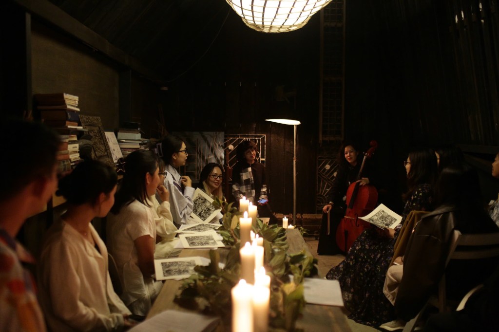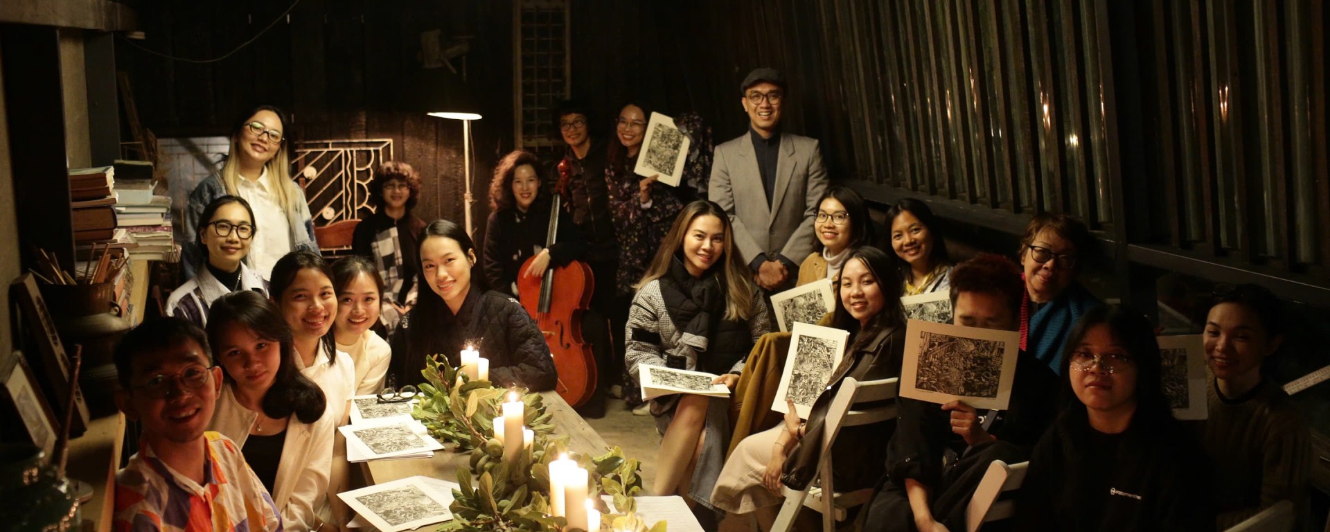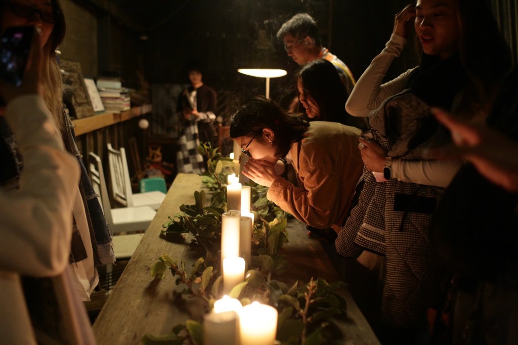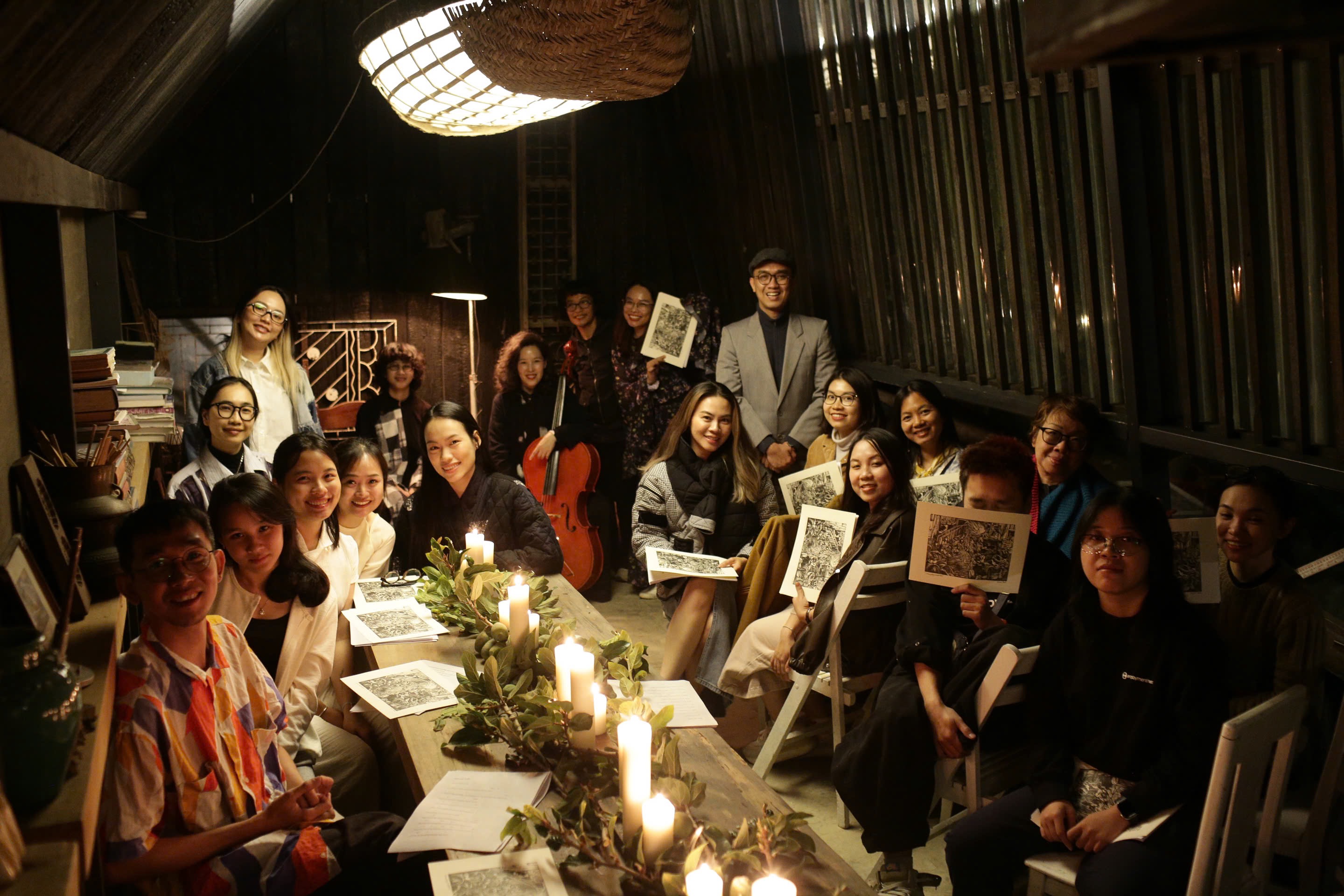 Chúng tôi bước vào một căn phòng rực nến, dưới một con thuyền gỗ lơ lửng trên trần như một giấc mơ đang treo giữa không gian. Và chúng tôi hát. Hát những bài tụng ca cho cha mẹ. Hát những bài hát gắn với ký ức riêng tư nhất. Nghe nhau kể những câu chuyện mà nhiều người lần đầu nói ra thành lời.