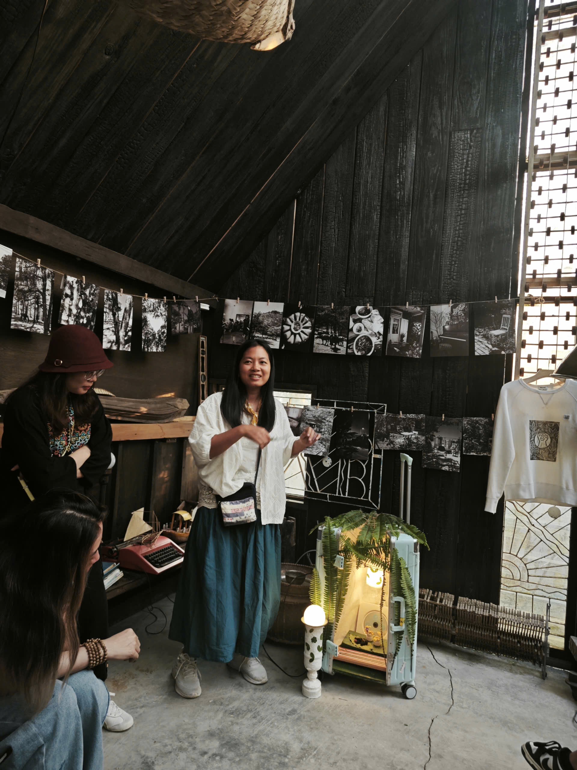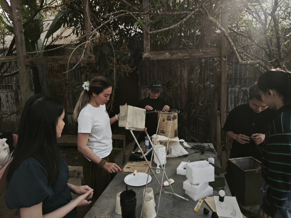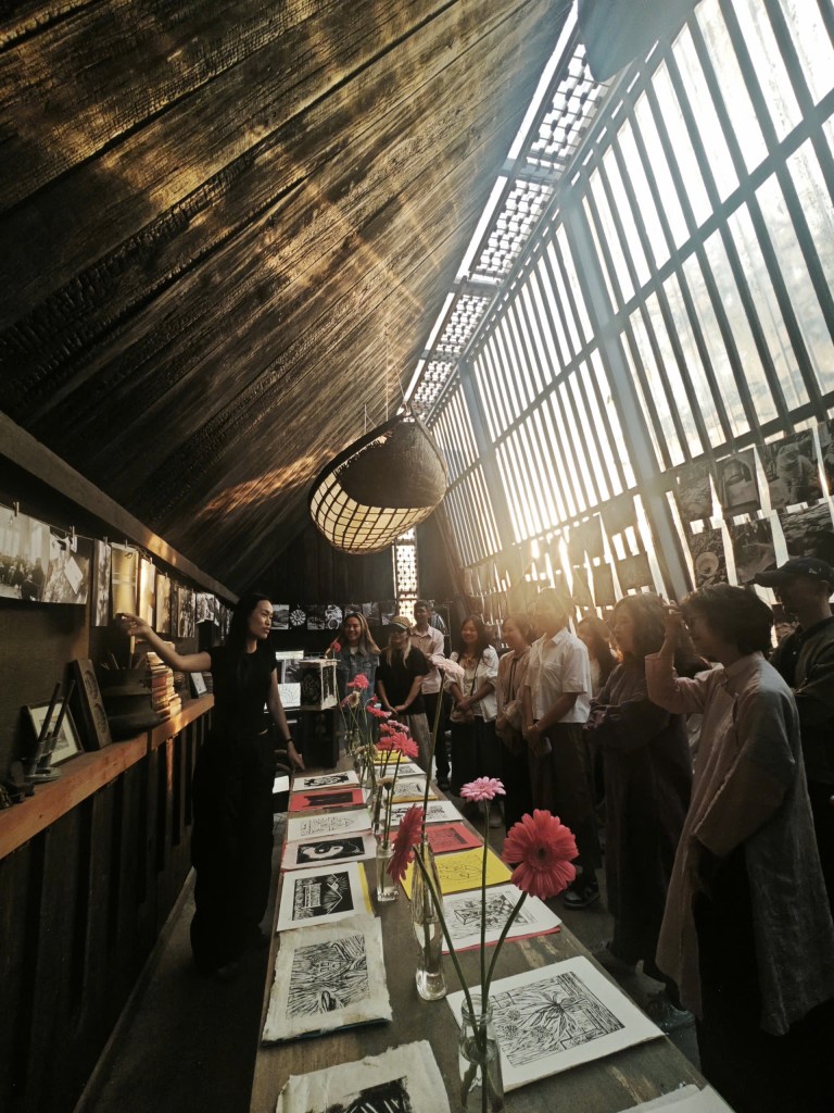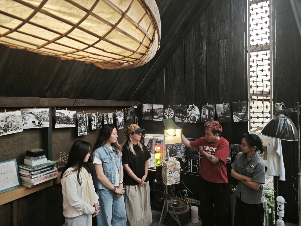 Buổi sáng cuối cùng, cả trại tất bật — làm đèn cho kịp trưng bày, hoàn thiện bản khắc gỗ, in ảnh ra để treo. Vừa hối hả vừa có một nỗi buồn nhẹ vì đã chuẩn bị chia tay nhau. Tôi ra đi khi ngày còn chưa đủ sáng, để lại chiếc đèn vali ở góc Nhà của Tre, và không kịp ở lại buổi showcase chiều hôm đó.