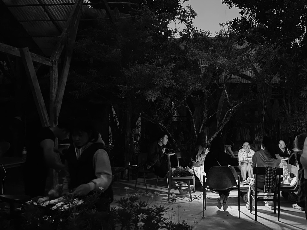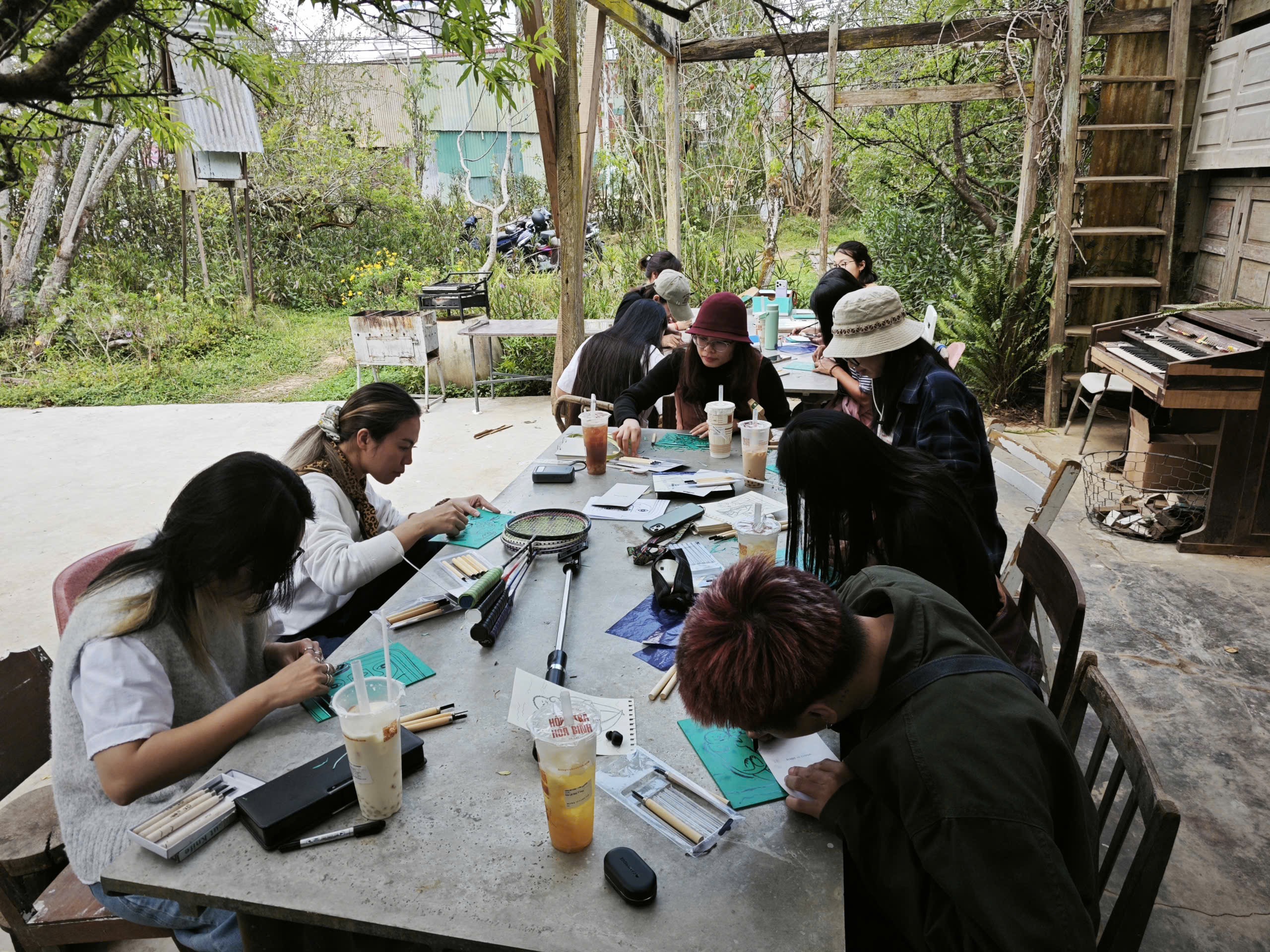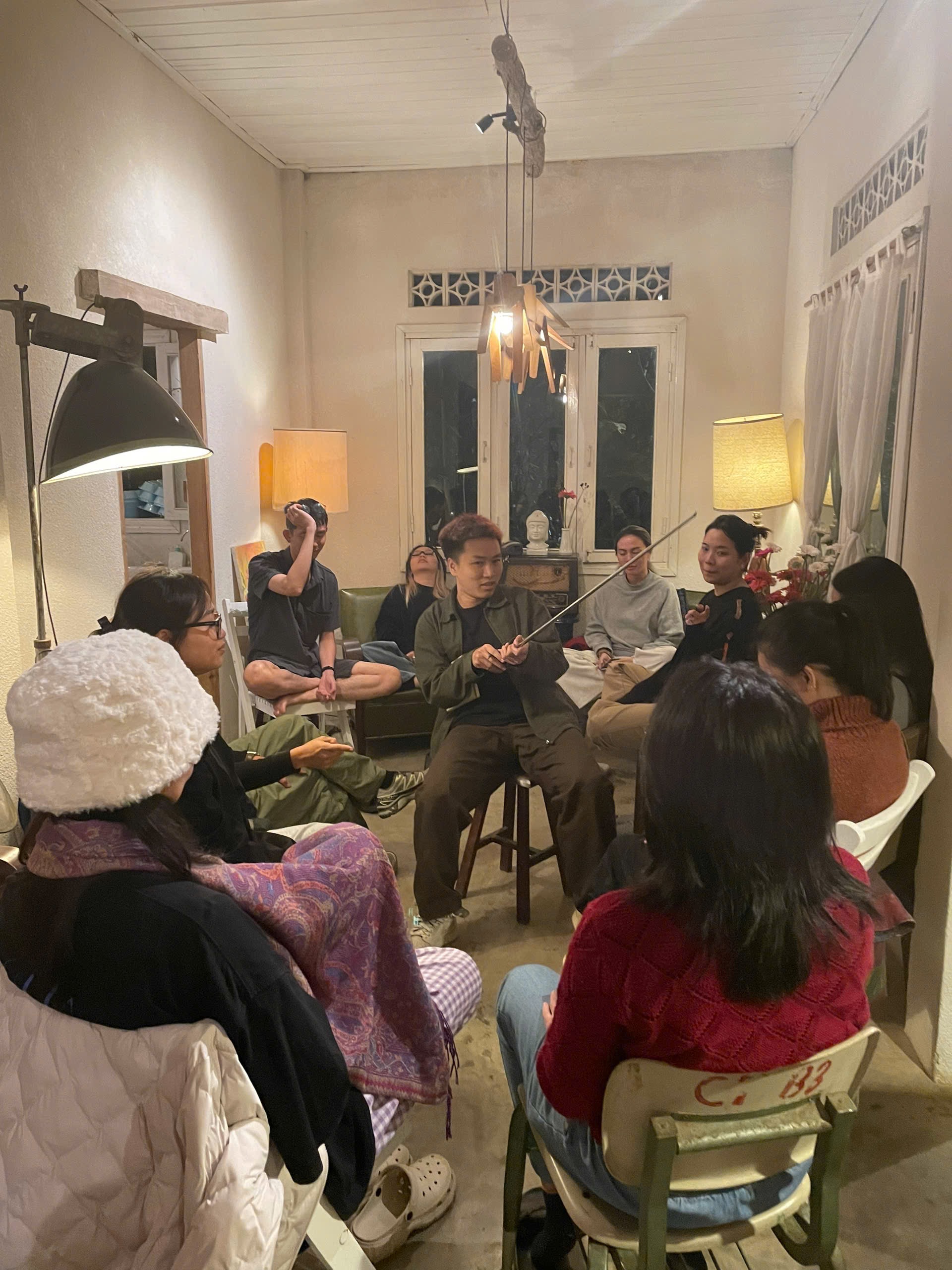 Nhóm có 25 người. Bốn người vận hành kiêm giảng viên: Lý, Tú, Tin và anh Tường. Còn lại là 19 học viên từ đủ các giai đoạn của cuộc đời. Chị Hằng, tổng biên tập một tờ tạp chí du lịch vừa nghỉ hưu, quyết định dùng những ngày tự do để kích hoạt lại tư duy sáng tạo của mình. Nhung và Quỳnh, hai người bạn cùng công ty thiết kế và kiến trúc, chưa năm nào bỏ lỡ camp của Lý — họ gọi đây là “retreat tinh khôi nhất”— không spa, không resort, chỉ là những người bạn quen hay mới, dành cho nhau hoàn toàn trong một khoảng thời gian ngắn, và ra về đầy hơn lúc đến. Trường, bạn cùng phòng của tôi, một graphic designer người Tiền Giang, fan lâu năm của Lý, lần này còn rủ cả em gái đi cùng.