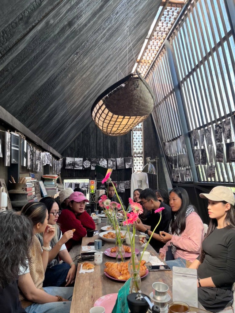 Những buổi chia sẻ đầu tiên trong gia đình nhỏ mới quen, khi người ta còn dè dặt, còn chọn lời, rồi dần dần lột bỏ lớp vỏ đó qua từng bữa ăn chung. Những đêm bên bếp lửa, khi câu chuyện không còn về công việc nữa mà về những thứ thật hơn, riêng tư hơn. Cả đám đi tắm rừng cùng nhau trong một buổi sáng trong xanh của cao nguyên lộng gió — tiếng cười vang trong rừng thông, ướt đẫm và hoan hỉ.