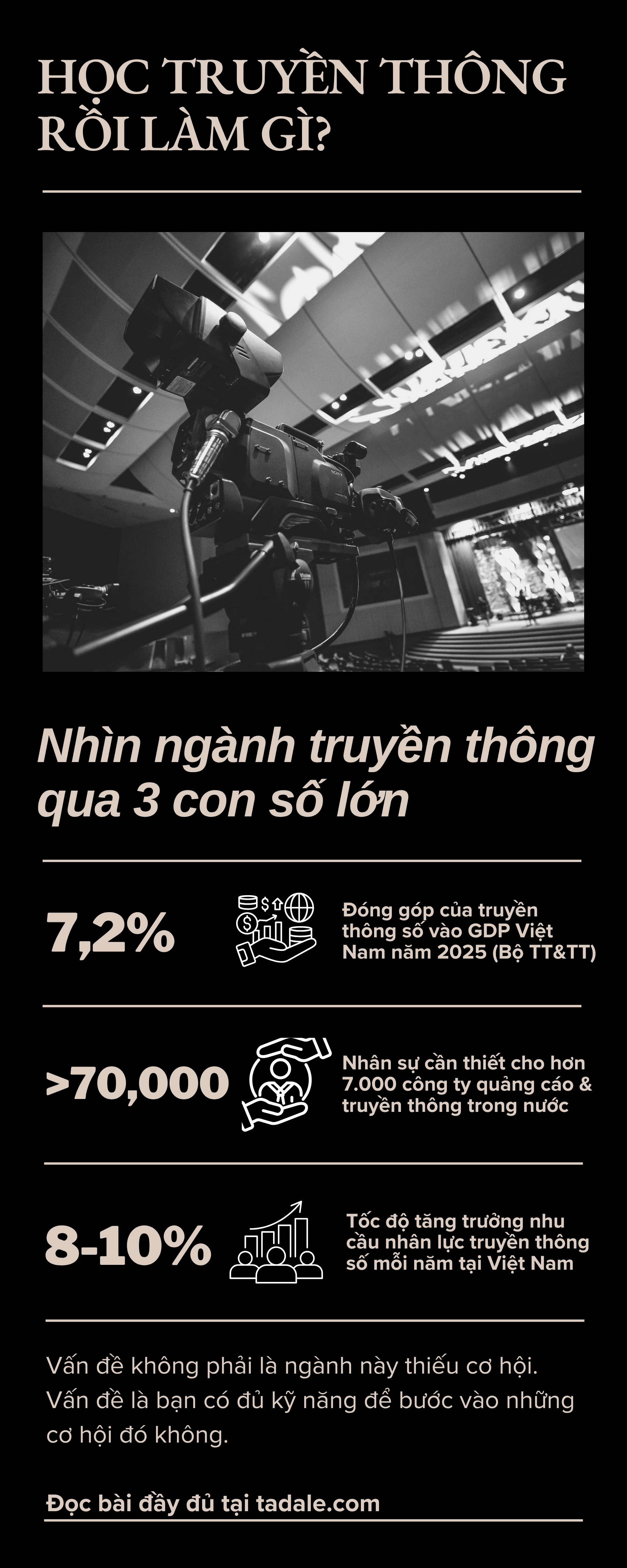 Trong tất cả các cuộc tư vấn hướng nghiệp, trong tất cả các buổi Career Day, trong tất cả các bài báo về ngành truyền thông — người ta thường hỏi: “Học ngành này ra làm gì? Lương bao nhiêu? Dễ xin việc không?”