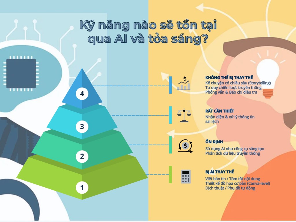 Không phải mọi kỹ năng truyền thông đều có giá trị như nhau trong thế giới Al đang định hình lại. Dưới đây là bức tranh thực tế về những kỹ năng đang tăng giá, những kỹ năng đang bị Al ăn mòn, và những kỹ năng không thể thay thế.