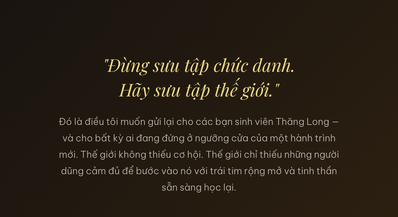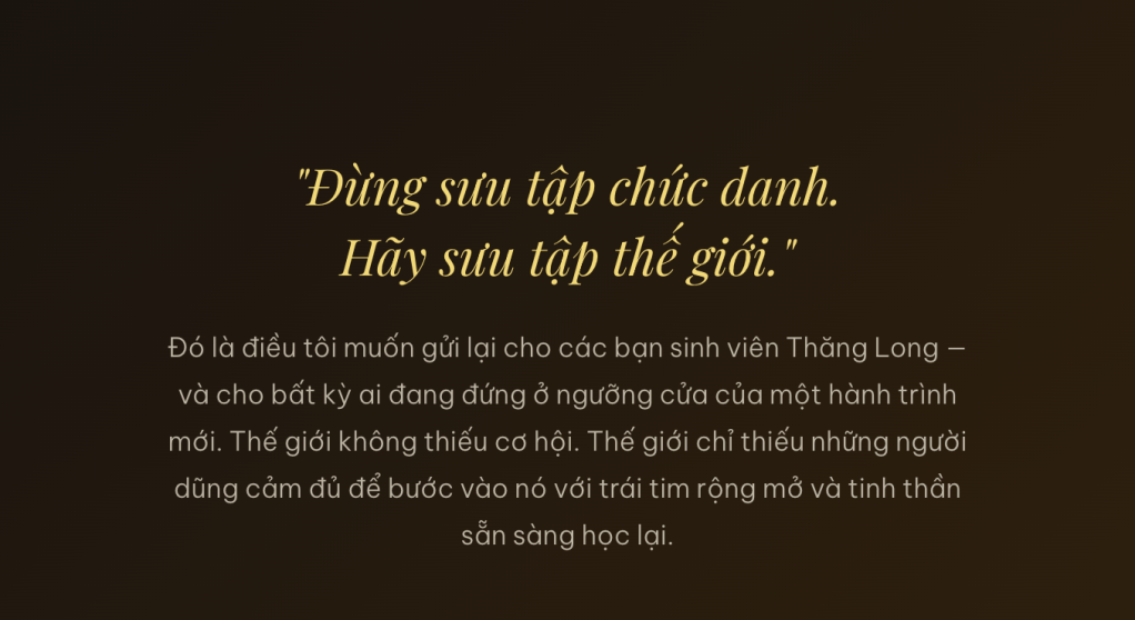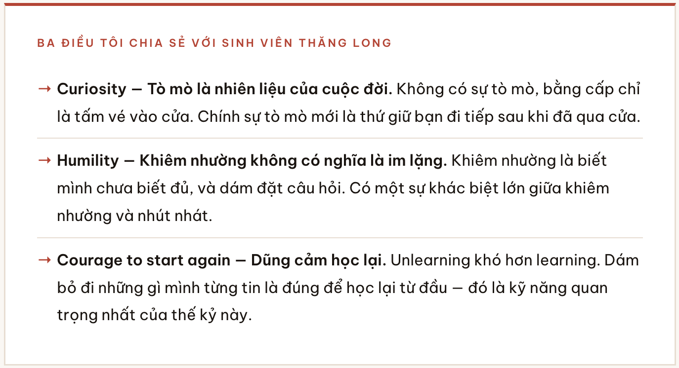 Có một điều tôi muốn nói thẳng — không chỉ với sinh viên Thăng Long, mà với bất kỳ bạn trẻ nào đang đọc bài này.