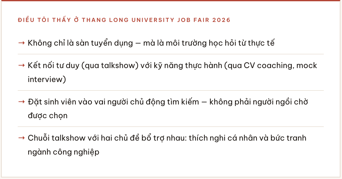 Nhìn vào mô hình của Thang Long University Job Fair, tôi thấy một triết lý giáo dục đang được thực hành — không chỉ được rao giảng.
