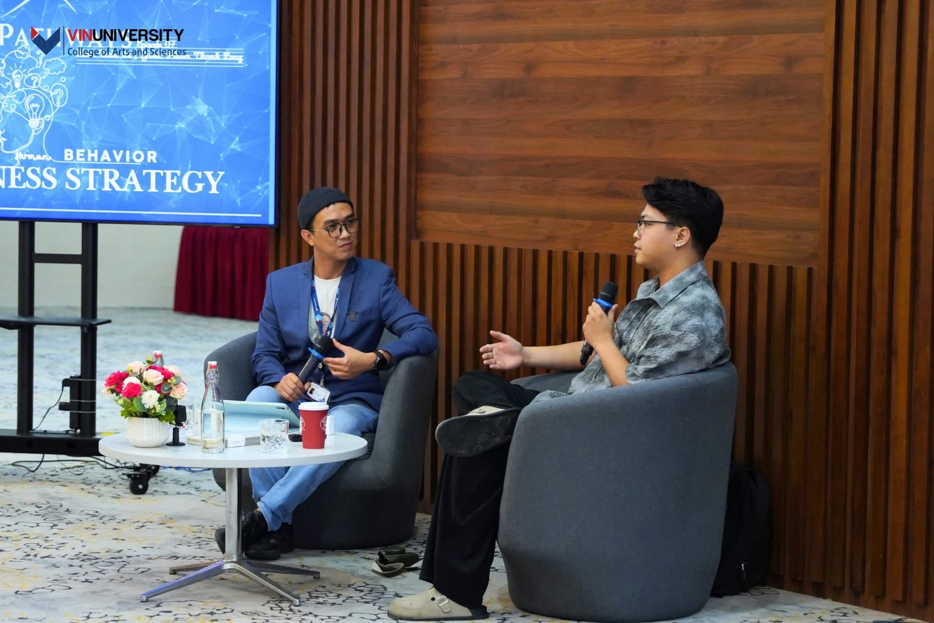 Tôi đã tưởng tượng Long sẽ bước vào phòng với vẻ gì đó nghiêm túc hơn. Kiểu dáng của một người làm nghiên cứu, dán nhãn cho chính mình bằng kính gọng đen và tập hồ sơ dày cộp. Thế mà anh bước vào Peace Room với trang phục trẻ trung, thoải mái, cái kiểu xuất hiện khiến bạn không đoán được người này là nhà nghiên cứu tâm lý, hay là một designer, hay là đang trên đường đi cà phê. Và có lẽ, đó chính là điều đầu tiên anh muốn nói với các bạn sinh viên hôm đó: rằng chẳng có khuôn mẫu nào cho một hành trình nghề nghiệp cả.