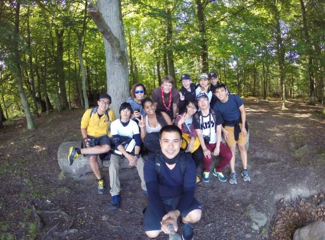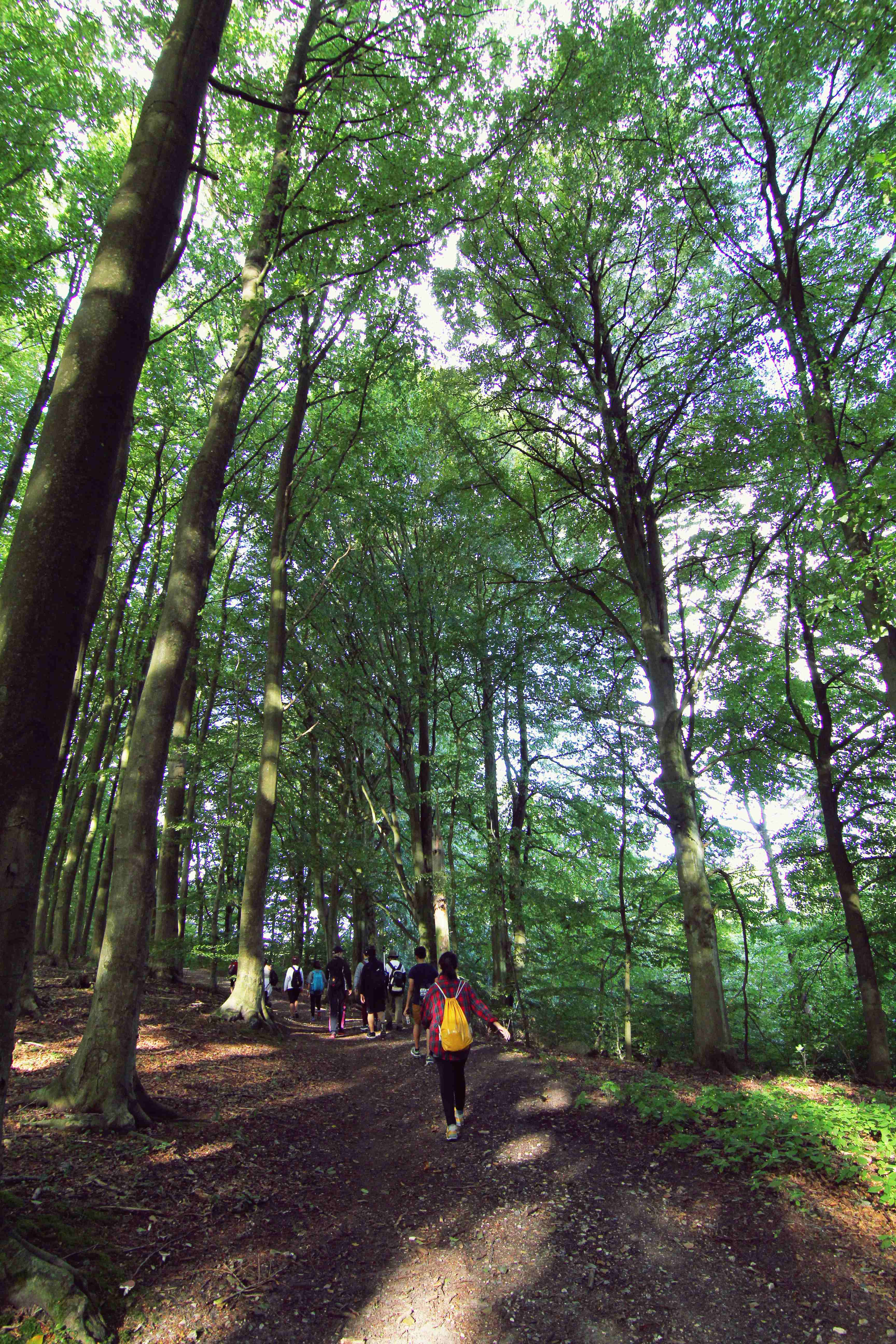 Chúng tôi- tức là nhóm đi bộ 26km tập trung ở trước cổng chính của trường, có 3 đại diện châu Âu, một từ Mỹ Latin, còn lại là 8 đại diện châu Á, hai từ Nhật, 4 từ Việt Nam, một từ Philipines và một từ Trung quốc, tuyệt nhiên không có ai ở lục địa đen góp mặt. Đây là một con số khá bất ngờ vì các bạn châu Âu vốn to khỏe hơn lại chọn giải pháp an toàn hơn là đi xe đạp. Sức mạnh bền bỉ của dân châu Á khiến mình khá tự hào và phấn chấn hẳn. Chúng tôi bắt đầu khá hào hứng vì thời tiết khá mát mẻ. Những bông hoa nở vàng hai đường đi trên thảm cỏ xanh khiến cho cảnh vật rực rỡ hơn rất nhiều. Chúng tôi đi ngang qua những ngôi nhà nhỏ bình yên ở bìa rừng, nhà nào cũng trồng táo đỏ ối. Những quả táo lúc lỉu trên cành khiến cho ai cũng thấy thèm nhưng nén hết sức để lịch sự không hái. Tôi, Ngân, Mai và Hiếu – 4 người Việt Nam ở vị trí ở giữa trò chuyện khá rôm rả bằng tiếng Việt. Trong khi đó thì các bạn Nhật trò chuyện với nhau về một đề tài gì đó mà tuồng như mặt ai cũng khá kịch tính. Chúng tôi đi qua những khu rừng cuối hè và những tầng lá vẫn còn xanh thăm thẳm.