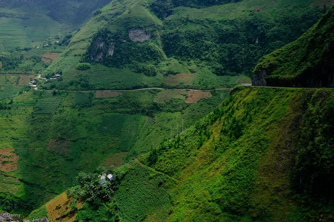 Cả hai chúng tôi đều mê mệt cảm giác của buổi chiều tà, cảm giác vừa thư thái, thư thái đến mức muốn chùng lòng, vừa hồi hộp, cảm giác hồi hộp rất khó tả khi chưa biết mình sẽ dừng lại ở đâu để chiêm ngưỡng cảnh chiều tà. Buổi chiều của ngày thứ 12 đón chúng tôi ở một thung lũng vô cùng đẹp. Lúa non trải một tấm thảm xanh rợn người dưới thung lũng, một dòng suối uốn qua điệu đàng dưới chân thung lũng. Và để điểm thêm màu sắc trên tấm thảm xanh đó là một vài nếp nhà đang rộn ràng lên khói bếp. Màu chủ đạo của buổi chiều là màu sepia – thứ màu thần thánh trong cách bức ảnh chỉnh màu, gợi cảm giác cô tịch nhưng vẫn ấm áp. Trên đường, lác đác từng đàn dê, trâu bò theo chủ trở về sau một ngày dài.