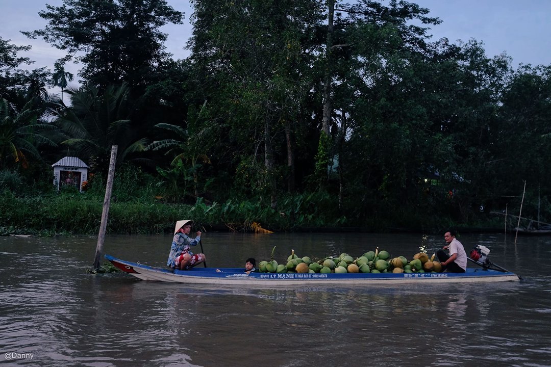 Chúng tôi dậy rất sớm để kịp đi chợ Nổi ngã Bảy vào sáng hôm sau. Chợ Ngã Bảy bây giờ đã bị dời đi sâu về mé rạch Ba Ngàm. Được hình thành từ những năm đầu của thế kỷ trước, trên một đoạn kênh mênh mông rẽ về bảy ngã, chợ nổi Ngã Bảy đã trở thành một trung tâm giao thương, nơi bán sĩ các loại trái cây và hàng nông sản của địa phương theo kiểu “mùa nào thức ấy”. Cũng từ đó, để phục vụ giao thương, nơi đây đã hình thành xóm làm xuồng, làng nghề làm ghe ở đầu doi Tân Thới Hòa, doi Chảnh, doi Cát dài hơn 1km với hàng trăm hộ ăn nên làm ra, bên cạnh đó còn có làng nghề làm cần xé ở Đại Thành cũng hoạt động khá sôi nổi…Khác với chợ trên bờ, chợ nổi là chợ động, bởi các ghe thuyền luôn dao động theo con nước lớn, nước ròng. Khi mặt trời chưa ló dạng, hàng trăm ghe, thuyền đã neo đậu san sát tạo thành một bức tranh dung dị trong làn sương sớm. Tiếng máy nổ, tiếng chèo khua nước, tiếng sóng vỗ vào mạn thuyền làm xao động cả một vùng sông nước. Đặc biệt mỗi ghe chỉ bán độc một món hàng, sản phẩm được treo trên đầu một cây sào dài được người địa phương gọi là “bẹo”. Giờ thì mọi thứ đã khác, vài ba cái xuồng lướt qua lướt lại, hoặc nằm im tĩnh lặng, chỉ có một ghe bún riêu bươn bả đi bán thoăn thoắt. Vài thương lái đứng ở mũi xuồng nhìn ra xa xăm. Vài người vẫn lạc quan vì nghe đồn là kế hoạch cải tạo đem chợ Nổi Ngã bảy – thương hiệu của xứ này về lại đúng thời tấp nập xưa kia của nó vốn có.
